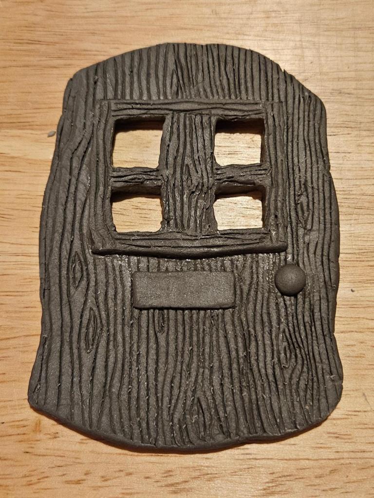 My most recent creation, which is still a work in progress, is a fairy door…it took ages to cut the wood effect into the clay, but it was so therapeutic. I’m looking forward to it drying out so I can paint it.